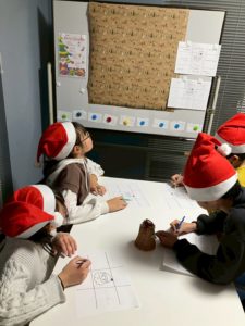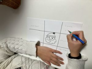 クリスマスのキーワードを9マスに書き込み、ビンゴゲームをして遊びました
