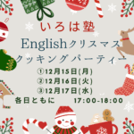 2025年11月17日 / 最終更新日 : 2025年12月6日 irohagakudou 【一般参加可】12/15-12/17 英会話 クリスマスイベント このイベントは受付を終了しました 英会話 クリスマス クッキング イベント ~みんなで一緒にクッキングをしよう! 簡単なカードゲームを楽しもう!プレゼントもゲット!~ 【開催日】 ①12月15 […]
