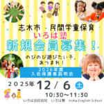 2025年11月17日 / 最終更新日 : 2026年1月18日 irohagakudou 【2次募集開始】令和8年4月~ 民間学童 説明会 このイベントの受付は終了いたしました 令和8年4月~ 民間学童 説明会<予約制> ●説明会のご予約はこちら 当施設の様子を知っていただくためにも、お子様と一緒にお越しください。 説明会前日の午前中まで受付します。 ご都合 […]
