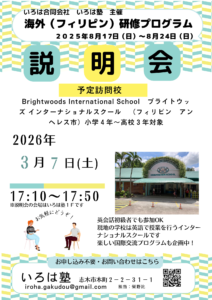 3/7(土) 2026夏 フィリピン海外英語研修 説明会
